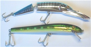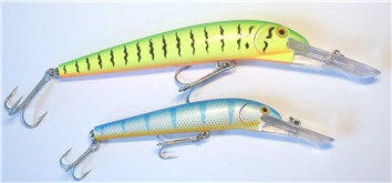 Der Fingerling ist auf den ersten Blick ein eher hässliches Ding (Der mit dem Buckel). Die Laufeigenschaften sind aber wirklich absolut überzeugend. Ich habe z.Zt. nur das große tieftauchende Modell (16 cm, bis 8 m geschleppt) im Angebot. Es gibt den Fingerling auch noch mit einer Tauchtiefe von rund 2 - 3 m und in 10 cm Länge für die etwas kleineren Räuber.