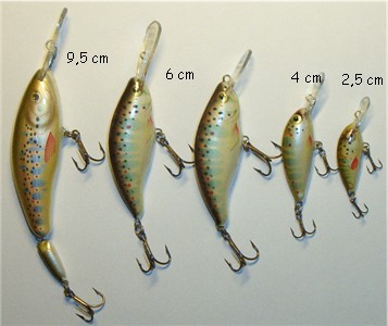 Diese Wobbler sind neu bei mir. Ich bin normalerweise skeptisch, wenn es um kleine Wobbler geht, denn es ist unerhört schwieirg, einem kleinen Wobbler Aktion einzuhauchen. Ich habe die “Hässlichen Entlein” getestet und bin total überrascht wie gut sie laufen. Selbst den Kleinsten, der gerade mal 2,5 cm lang ist, spürt man in der Rute, wenn man etwas schneller zieht. Bei normalem Tempo wackelt er mit Hinterteil, dass es eine wahre Freude ist.