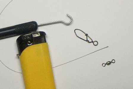 Um diesem ganzen Ärger aus den Wege zu gehen, baue ich mir meine Vorfächer selbst. Alles, was Sie brauchen, ist Stahlvorfach als Meterware, einen Twizzle-Stick und ein Feuerzeug. Nein, ich benutze kein ummanteletes Stahlvorfach, das ich verschweissen will.
